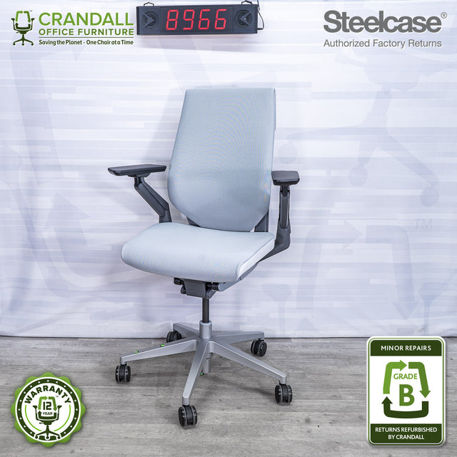 In the event of a failure, Crandall Office Furniture will send replacement parts with installation instructions – installation labor costs, or tools needed are not covered. In the event of a failure beyond repair, a replacement chair will be sent. This warranty is good up to the stated manufacturer’s weight limits / capacity, which is 400lbs for the Steelcase Gesture Chair.