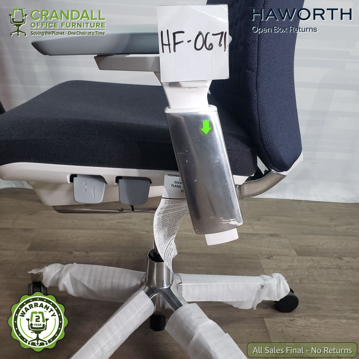 All of our Haworth Open Box Return Chairs come with a 2-Year Warranty under normal usage. All working components are warranted for 2 years against manufacturing defects in material and workmanship.
