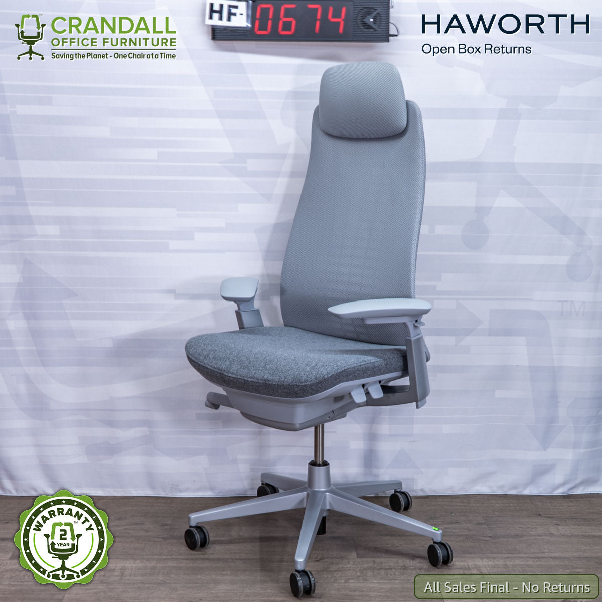 All Haworth Open Box Returns come with a 2 Year Warranty (provided by Crandall Office Furniture), but are not eligible for return (All Sales Final).