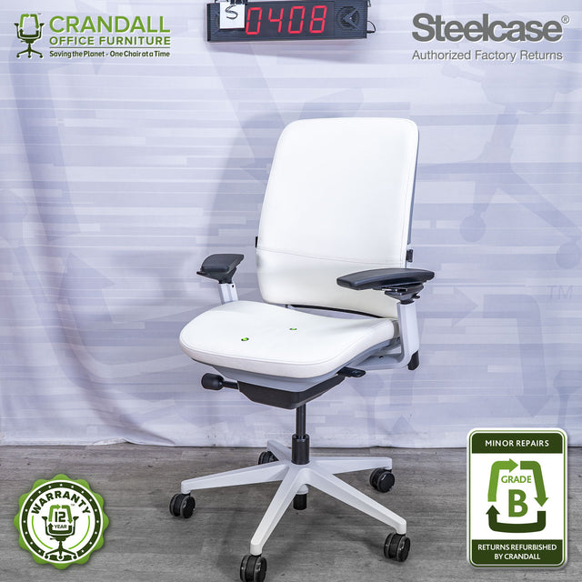 All of our Steelcase Authorized Factory Return Chairs come with a 12-Year Warranty under normal usage. All working components are warranted for 12 years against manufacturing defects in material and workmanship.