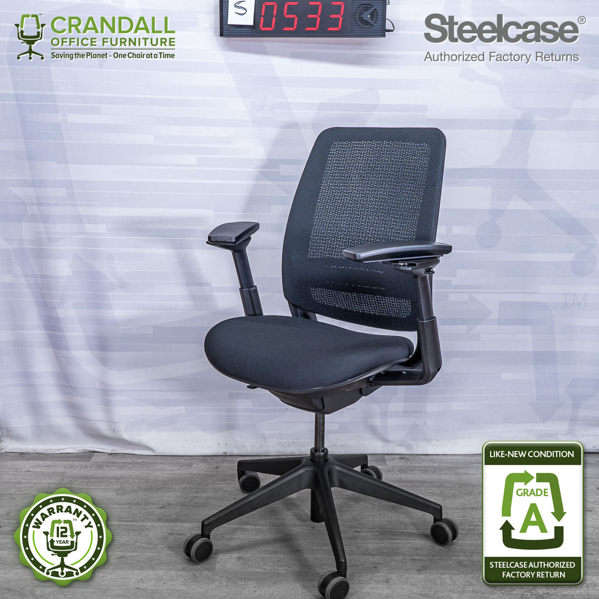 We are proud to offer our industry-leading 12-year warranty on all Steelcase Authorized Factory Return chairs, ensuring lasting comfort and peace of mind. Our amazing customer service team is always ready to assist you throughout the warranty period.