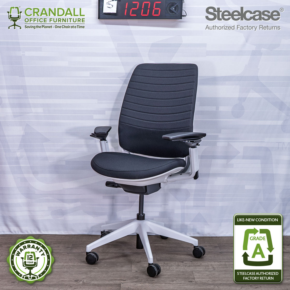 We are proud to offer our industry-leading 12-year warranty on all Steelcase Authorized Factory Return chairs, ensuring lasting comfort and peace of mind. Our amazing customer service team is always ready to assist you throughout the warranty period.