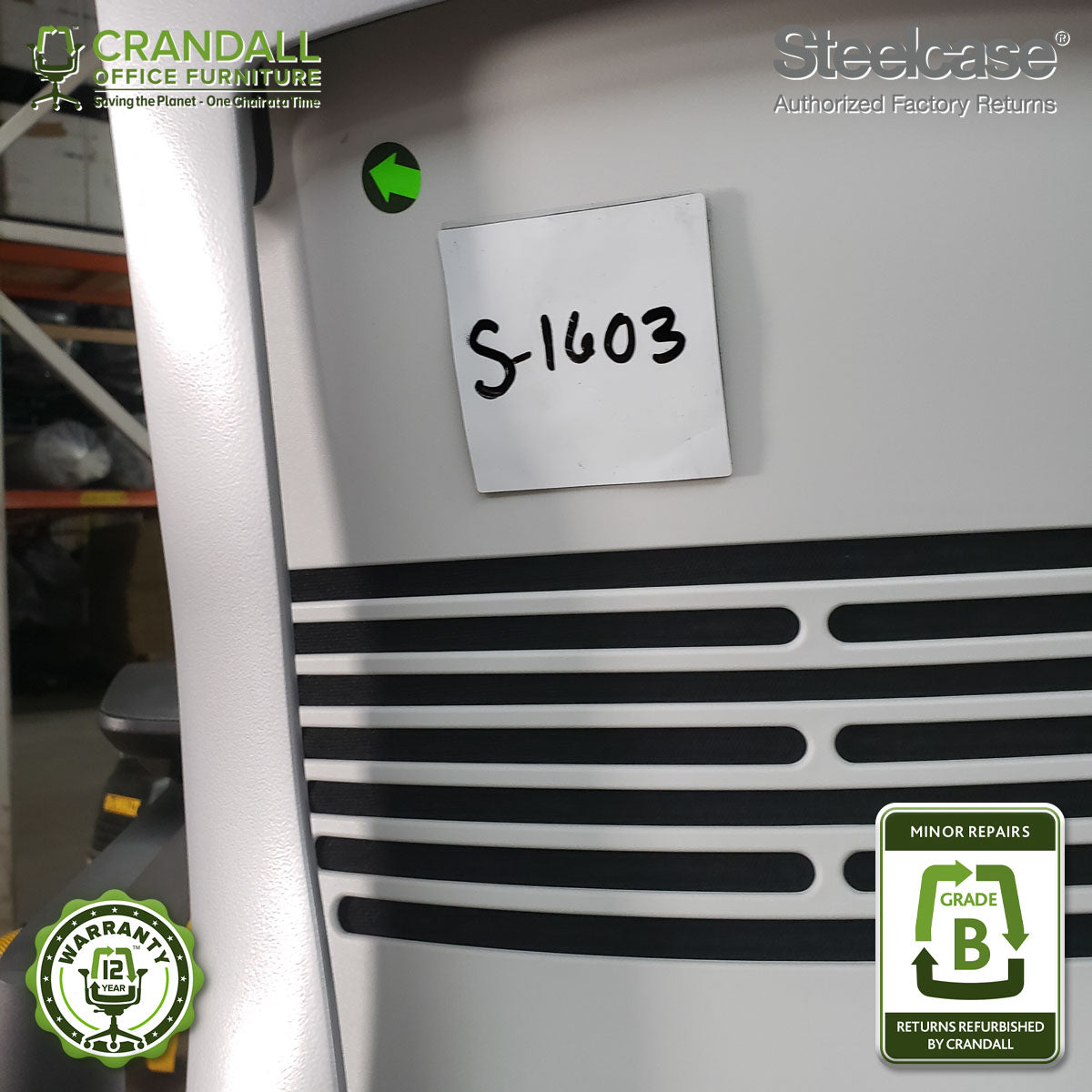 We are proud to offer our industry-leading 12-year warranty on all Steelcase Authorized Factory Return chairs, ensuring lasting comfort and peace of mind. Our amazing customer service team is always ready to assist you throughout the warranty period.