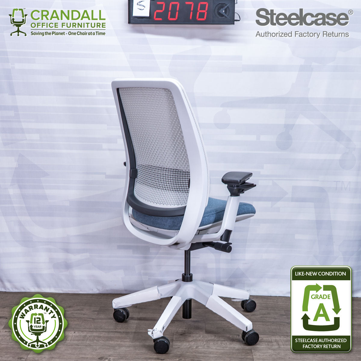 We are proud to offer our industry-leading 12-year warranty on all Steelcase Authorized Factory Return chairs, ensuring lasting comfort and peace of mind. Our amazing customer service team is always ready to assist you throughout the warranty period.