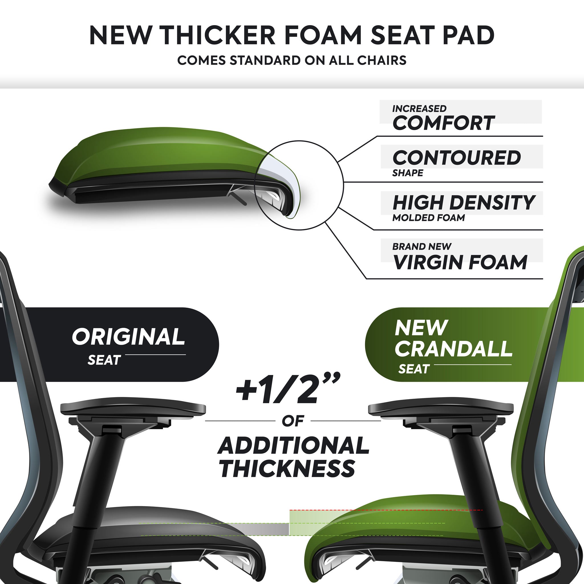 - Enhanced Comfort: A new foam seat pad adds an extra 1/2" of cushioning and ergonomic support, ideal for long hours of use.